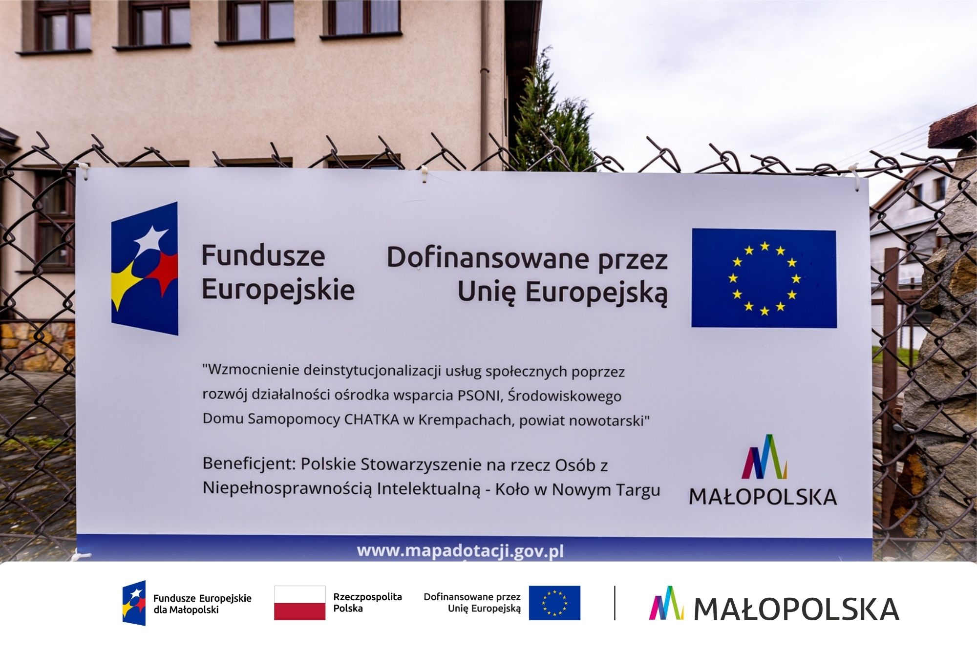 Polskie Stowarzyszenie na rzecz Osób z Niepełnosprawnością Intelektualną – Koło w Nowym Targu uzyskało dofinansowanie z Unii Europejskiej na realizację projektu „Wzmocnienie deinstytucjonalizacji usług społecznych poprzez rozwój działalności ośrodka wsparcia PSONI, Środowiskowego Domu Samopomocy CHATKA w Krempachach, powiat nowotarski” (skrót: „Rozwój ŚDS CHATKA w Krempachach”).