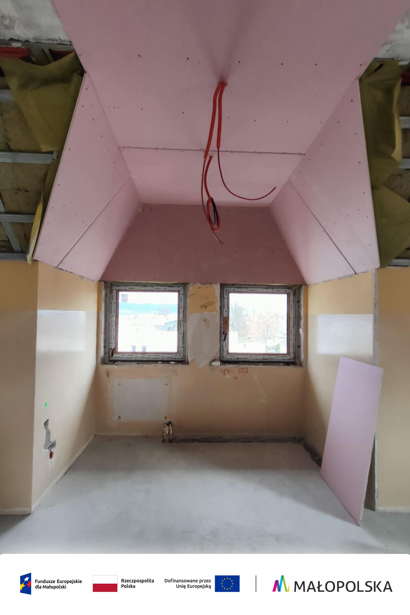 Z radością informujemy o postępach w realizacji projektu „Wzmocnienie deinstytucjonalizacji usług społecznych poprzez rozwój działalności ośrodka wsparcia PSONI, Środowiskowego Domu Samopomocy CHATKA w Krempachach – powiat nowotarski”, dofinansowanego ze środków Funduszy Europejskich. Przebudowa budynku, w którym swoją siedzibę znajdzie Środowiskowy Dom Samopomocy „Chatka”, wchodzi w kolejny, bardzo zaawansowany etap! W ostatnich tygodniach na placu budowy wykonano szereg kluczowych prac: • elewacja budynku jest już niemal ukończona – obiekt został ocieplony, a stolarka okienna została w całości wymieniona, • szyb windowy jest wykończony, • zgodnie z projektem postawiono wszystkie ściany działowe – pomieszczenia nabierają finalnego układu, • w przeważającej części wykonano instalacje: wodno-kanalizacyjną, sanitarną oraz elektryczną, • trwają ostatnie prace przy ocieplaniu poddasza.